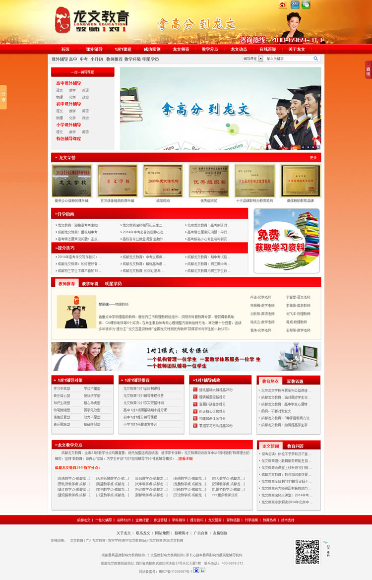 龍舞九霄,文行天下。經(jīng)過不斷的壯大,始終秉承憑良心辦學、憑實力辦學宗旨的龍文教育創(chuàng)始至今,業(yè)務范圍已經(jīng)涵蓋了中小學專業(yè)個性化輔導、高考復讀、夏令營、圖書出版、出國留學等諸多領域,共培養(yǎng)了近60萬名學員。截至2013年6月,龍文教育已有1059家分校區(qū),遍及全國54個大中城市。